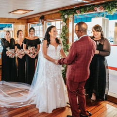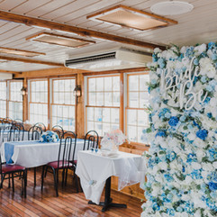 Ceremonies take place in front of the doorway leading out to our stern viewing deck. The doorway can accommodate garlands up to 18' long (there is a plug to allow the use of string lights within the garland with a 10' extension cord, if desired).